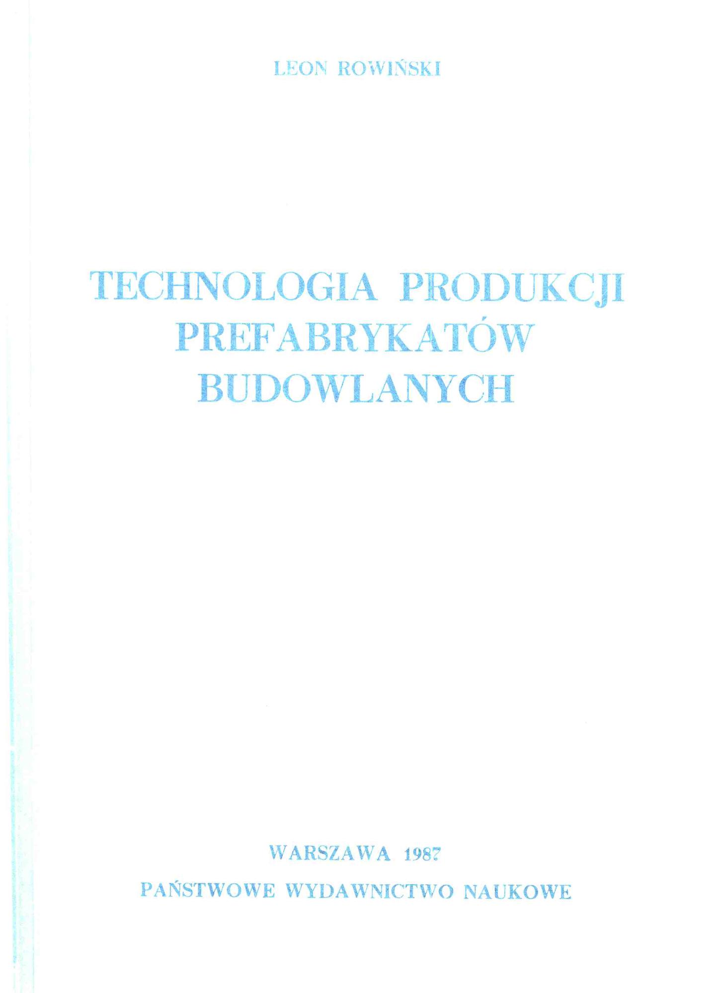 Technologia produkcji prefabrykatów budowlanych / Leon Rowiński. - Warszawa ; Łódź : Państ. Wydaw. Naukowe, 1987 (Łódź : ZGWN). - 638, [1] s., [1] k. tabl. : fot., rys., wykr. ; 24 cm.