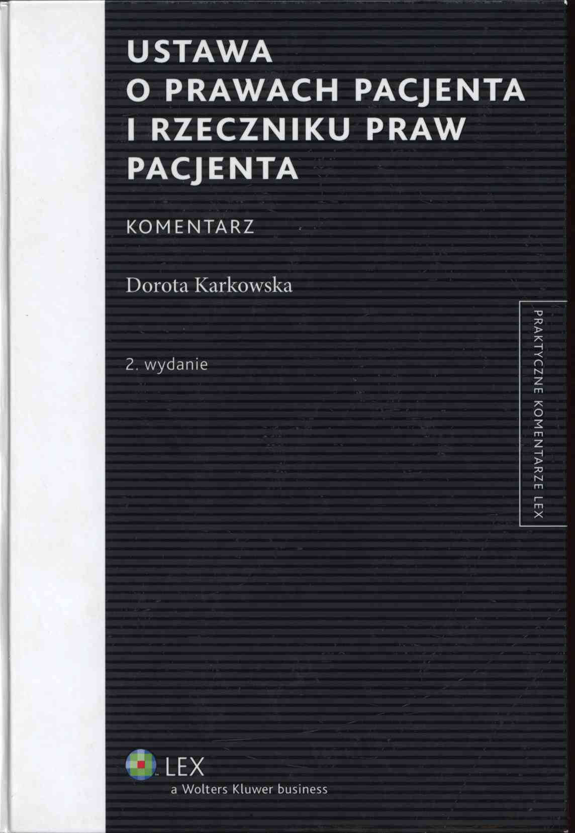 Ustawa o prawach pacjenta i Rzeczniku Praw Pacjenta : komentarz / Dorota Karkowska. - Wyd. 2., stan prawny na 1 stycznia 2012 r. - Warszawa : Wolters Kluwer Polska, 2012. - 536, [1] s. ; 21 cm.